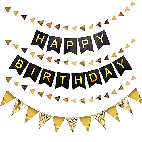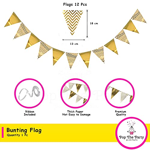 This Is The Latest And Premium Product By Team Developed After R&D From Our Exclusive Customers. The Pack Includes 1Pc Golden Letter Happy Birthday Banner 1Pc Gold Zig -Zag Flag Banner And One Triangle Gold Garland.
