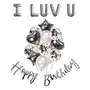 Pop the Party Happy Birthday Cursive Banner and I luv u 5 pcs alfabet Silver Decoration Set with 14 pcs Silver Bunch