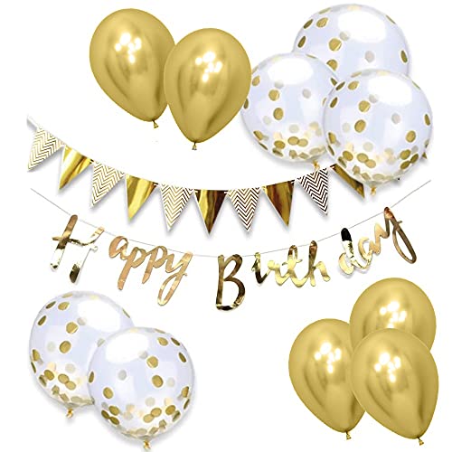 This Is The Latest And Premium Product By Team Developed After R&D From Our Exclusive Customers. The Pack Includes 1 Pc. Gold Happy Birthday Cursive Banner 1 Pc. Gold Bunting Zig Zag With 5 Pc Gold Confetti And 5 Pc Latex Balloons.