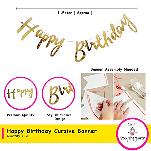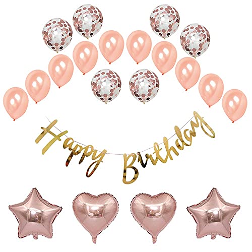 HomeBabyParty SuppliesPop The Party Happy Birthday Cursive Gold Banner with 14 pcs Rose Gold Balloon Including Star and Heart Foil Balloon 5pcs Latex & 5 pcs Confetti Balloon Set
