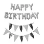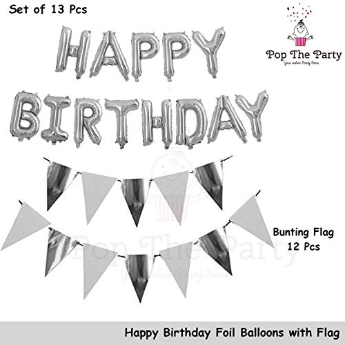 HomeBabyParty SuppliesPop the Party Happy Birthday Letter Foil Balloon with Silver zig zag bunting Birthday Party Supplies, Happy Birthday Balloons for Party Decoration - Silver