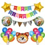 Happy Birthday Theme Decoration with Tiger FaceBanner Balloon Triangle Set for 1st2nd3rd4th5th6th birtdhay