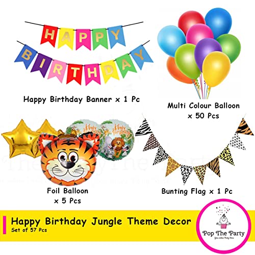 Package Includes: This Beautiful Jungle Theme Party Decorations Set Include: 1X Happy Birthday Banner1 X Triangle Bunting50Pcs Multi Balloon1 Tiger Foil Balloon2 Round Balloon2 Star Foil Balloon