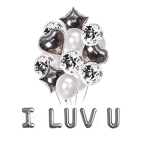 Pop the Party I luv You alfabet Decoration Set with 14 pcs Silver Bunch