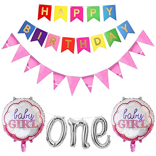 Packege Include: 1X Happy Birthday Banner 1 X Triangle Bunting 2 Baby Girl Round Foil One Silver Foil