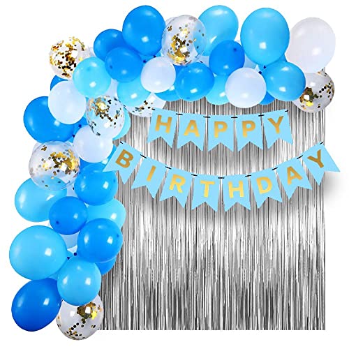 Light Blue Birthday Banner Party Decorations Kit Gold Confettiwhite And Blue Balloons Archglue Dot And Silver Curtains For Boys Girls Men Women Birthday Party Decoration