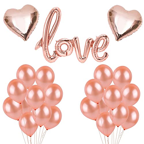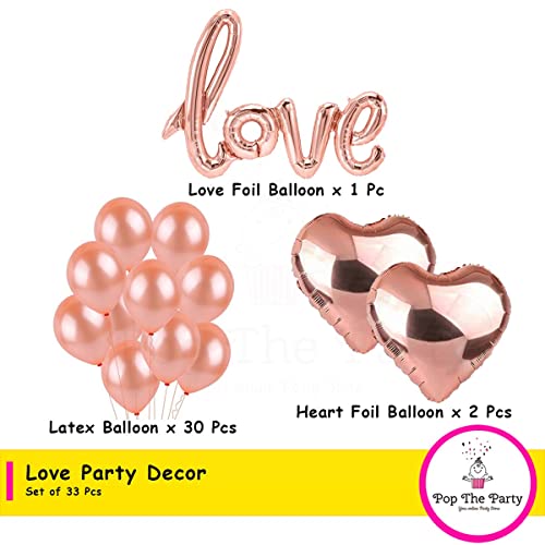 Pop The Party Love Balloon Set - Rose Gold Letter Love Balloon with Latex and Star Balloons for Valentines Day, Birthday Anniversary Party Décor