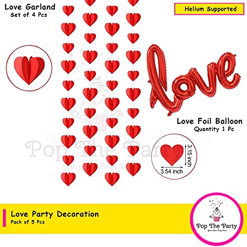 Pop The Party love letter Foil Balloon With 4pcs Heart Bunting for Birthday Annicersary Party Decoration
