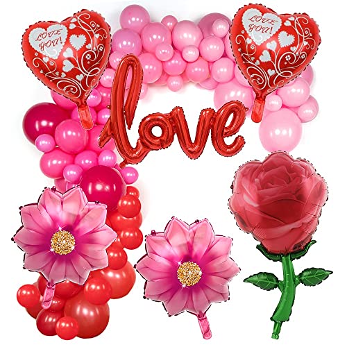 The Pack Includes 1X Red Rose2 X Flower Shape 2X Heart Foil Balloon30Pcs Balloon1 Cursive Love Foil 1 Arch