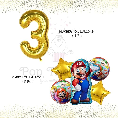 Mario Birthday Party Supplies 6 Pcs Mario Brothers Mylar Balloons For Boys Girls 3Rd Birthday Baby Shower Mario Themed Party Decorations (3Rd Birthday)