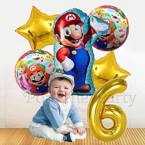 Mario Birthday Party Supplies 6 Pcs Mario Brothers Mylar Balloons For Boys Girls 6Th Birthday Baby Shower Mario Themed Party Decorations (6Tht Birthday)