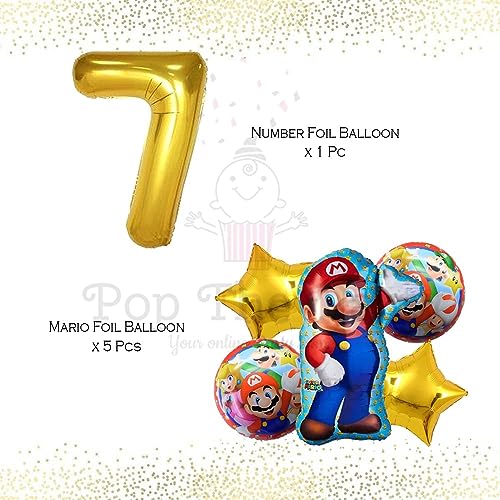 Mario Birthday Party Supplies 6 Pcs Mario Brothers Mylar Balloons For Boys Girls 7Th Birthday Baby Shower Mario Themed Party Decorations (7Th Birthday)