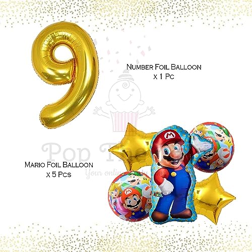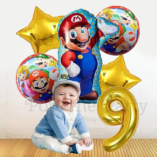 Mario Birthday Party Supplies 6 Pcs Mario Brothers Mylar Balloons For Boys Girls 9Th Birthday Baby Shower Mario Themed Party Decorations (9Th Birthday)