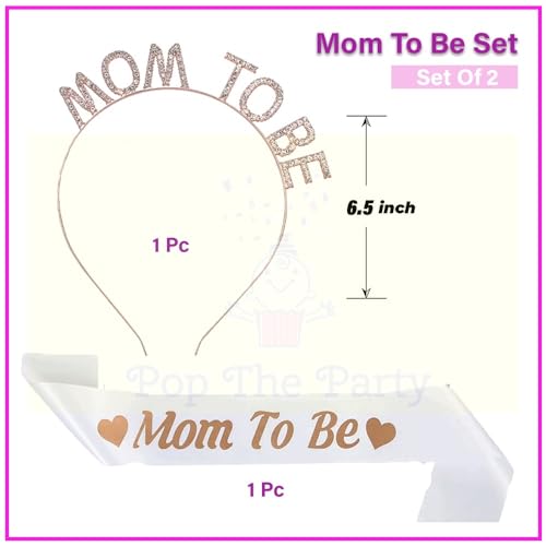 Pop The Party Mom To Be Sash And Head Band 2Pcs For Maternity, Photoshoot Material Items Supplies, Mom To Be Tiara.