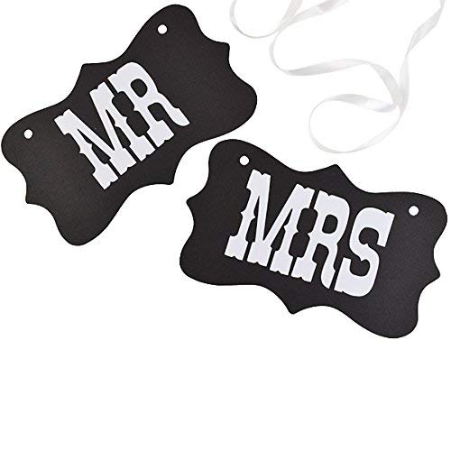 100% Brand New And High Quality 2. Material: Pearlized Cardstock Paper / Kraft Paper 3. Size: 10.5X6.5 Inches(26.5X17Cm) 4. Color: Black/White/Khaki 5. 1 Set Includes: 1 Mr Sign And 1 Mrs Sign 1*3M White Silk Ribbons 1 Set Includes: 1 Bride Sign And 1 Groom Sign 1*3M White Silk Ribbons 6. Can Be Used For Photo Booth Props Chair Signs Garland Banner Etc. 7. Great Quality. Unique Addition To Any Wedding Or Home Party.