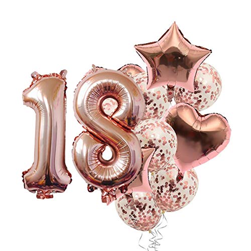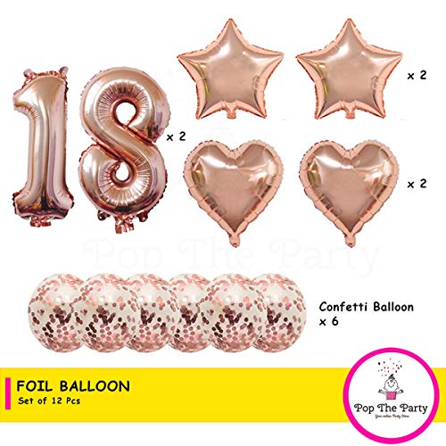 HomeBabyParty SuppliesPop The Party Nylon 18Th Number Balloon With 18 Digit Balloon For Including Star,Heart&Confetti Balloons,Rose Gold, Multicolor, 14 Pcs