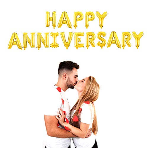 Nylon Happy Anniversary Balloons Party Decorations Supplies (Gold)