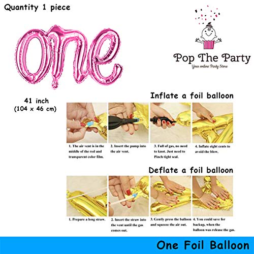 Pop the Party One Balloon Gold One Script Balloons Letter Foil Balloons for First Birthday Decoration Birthday Party supplies