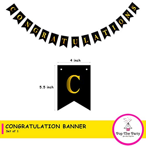 HomeBabyParty SuppliesPop The Party Pack of 11 Pcs Black Congratulation Banner with Black Confetti Balloons for Birthday Decoration Items & Latex Balloon