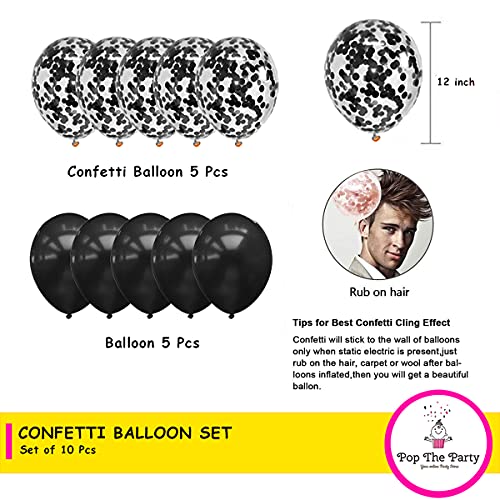 Pop The Party Pack of 11 Pcs Red Happy Bithray Banner with Black Confetti Balloons for Birthday Decoration Items & Latex Balloon