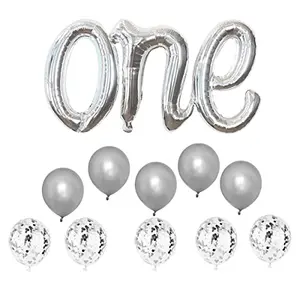 Silver ONE Balloons Banner Foil Mylar...