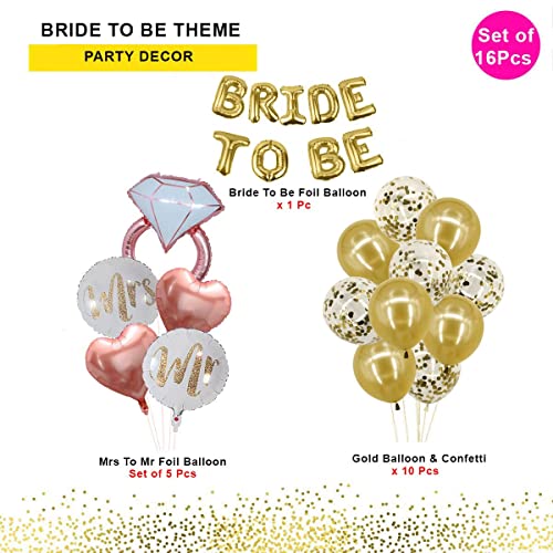 HomeBabyParty SuppliesPop The Party Bachelorette Party Decorations Kits-Gold Bridal Shower Party Decor and Supplies-Gold Bride to Be Balloons, Ring, Mr Mrs Round,Heart Foil Balloon,Latex and Confetti