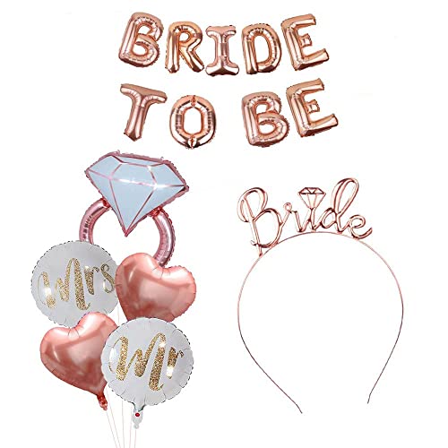 HomeBabyParty SuppliesPop The Party Bachelorette Party Decorations Kits-Rose Gold Bridal Shower Party Decor and Supplies-Rose Gold Bride to Be Balloons, Ring, Mr Mrs Round,Heart Foil Balloon,Bride Heirband Pack of 7