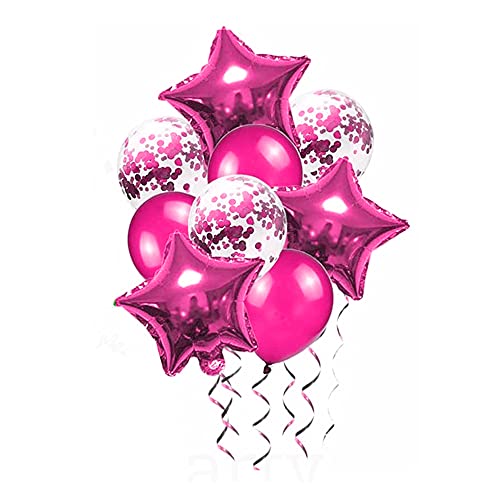 HomeBabyParty SuppliesPop the Party Pink 9PCS/Set Birthday Balloon Set Confetti Star Latex Foil Balloon Garlands for Wedding Decoration Birthday Party Decorations Kids Adults Balloons (Pink)