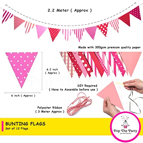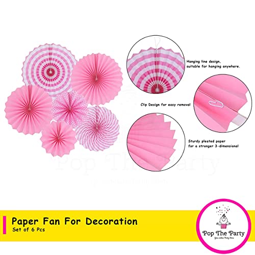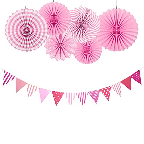 Pink Paper Fan Set With Pink Fag For Birthday Anniversary Baby Shower Party Decoration