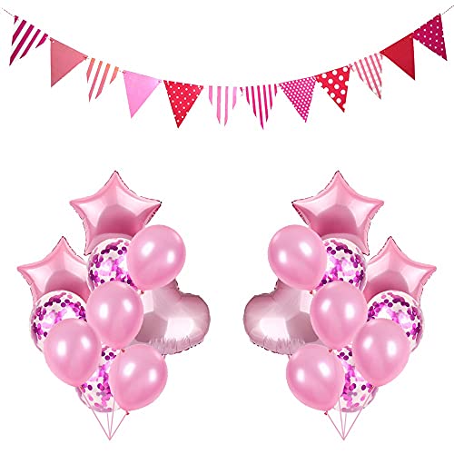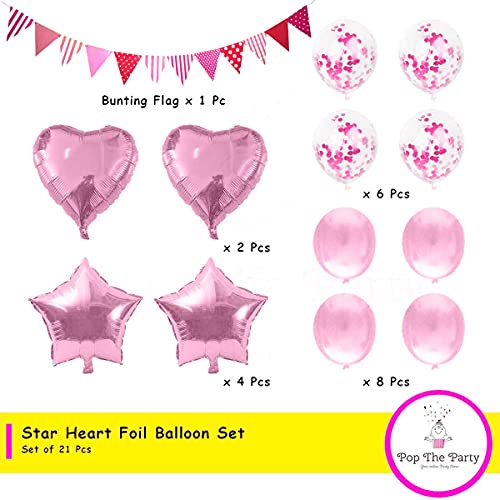 HomeBabyParty SuppliesPop the Party Pink Triangle Flag Banner with Pink Star Heart Confetti and Latex Balloon for Birthday, Anniversary, Baby Shower Party Decoration(Set of 21)