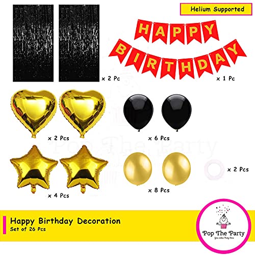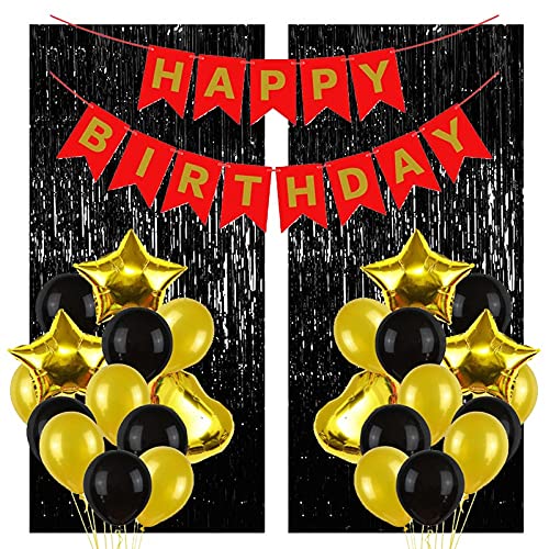 HomeBabyParty SuppliesPop The Party Red Gold Black Happy Birthday Banner Balloon Set with Curtain Pack of 23 for Including Latex, Star,Heart,Red Happy, Black Curtain Birthday Banner