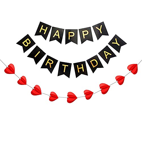 Red Happy Birthday Banner with Heart Bunting for Use of Birthday Party Decoration