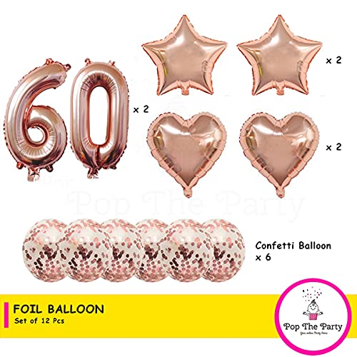 HomeBabyParty SuppliesPop The Party Rose Gold 60th Birthday party Decorations With, Star Foil, Confetti Balloons, Heart Foil and 60 No. Foil Pack Of 12