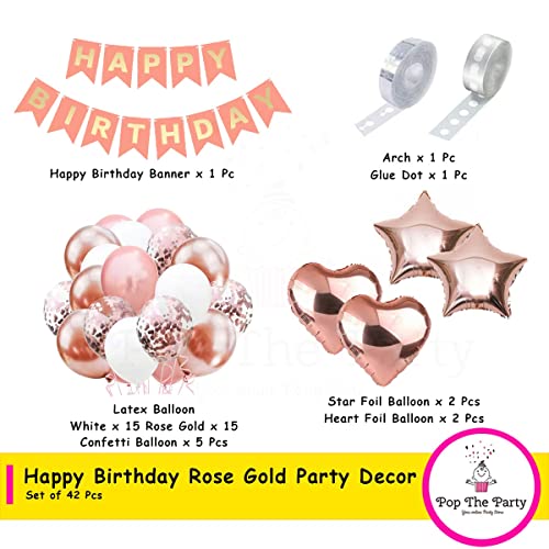 HomeBabyParty SuppliesPop The Party Rose Gold Birthday Decoration kit with Star,Heart,Latex,Confetti Balloon and Arch for 15th,18th,21st,25th,30th,40th,50th,60th Decoration