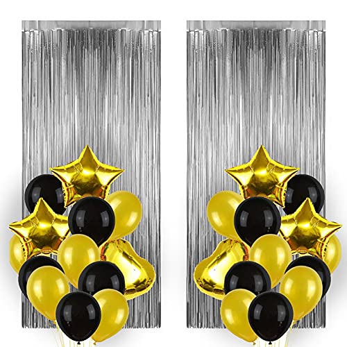Pop The Party Rubber Colorful 22pcs Silver and Gold Balloon, Confetti Air Balls, Curtain Set for Kids and Adults