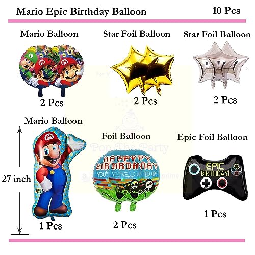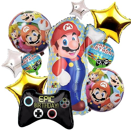 Super Mario Theme Foil Balloons for Video Game Happy Birthday Party Decoration (Pack Of 10)