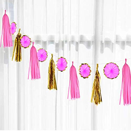 HomeBabyParty SuppliesPop The Party Tassels Cum Fan Hang Flag for Birthday Parties, Weddings, Baby Showers,Anniversaries and Other Occassions(Gold Pink)