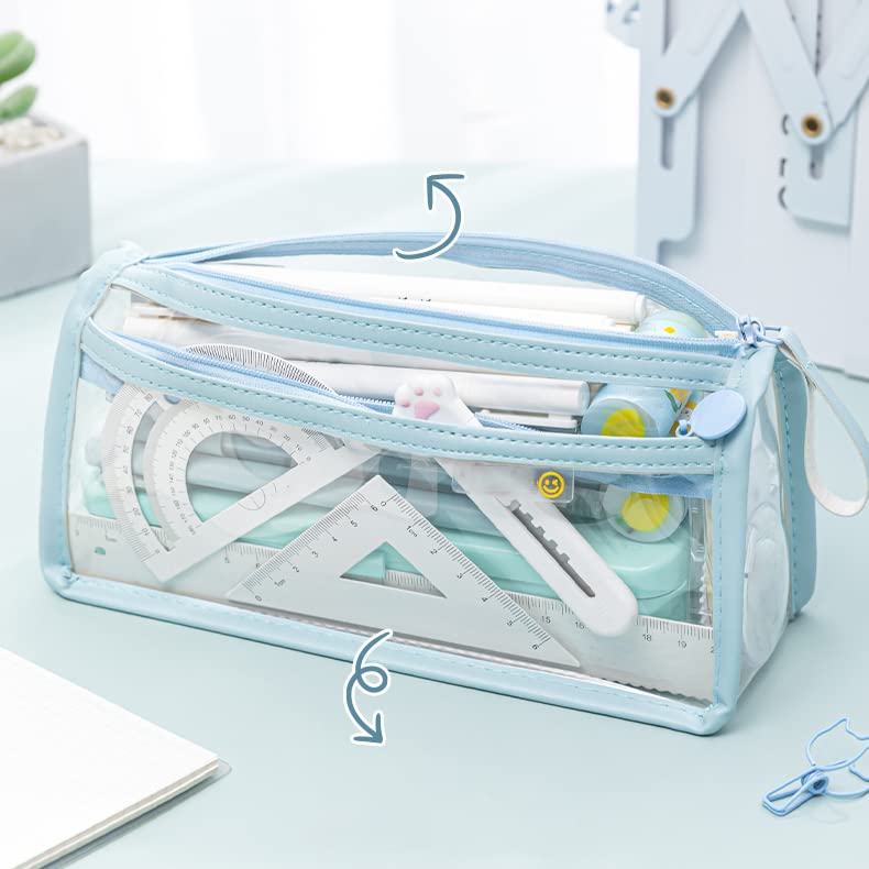Premium Quality Pencil Case: Clear Makeup Pouch Is Made Of High Quality Pvc Material With A Strong Zipper Easier To Grip And Control Durable And Tear. This Pouch Can Even Be Used To Store Your Comentic Items As Well. With Large Storage Capacity This Makeup Bag For Travel Can Accommodate Your Makeup Brushes Perfume Bottles Lipsticks And Much More Organizing Your Travel Kit.