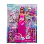 This dress-up Barbie® doll offers transformational play from land to sea to air! She comes with multiple fashions and accessories including a mermaid tail two skirts themed headbands and a necklace. The colorful Barbie® fantasy set also includes a baby dragon and unicorn for even more storytelling fun. Doll cannot stand alone. Colors and decorations may vary.