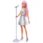 Barbie® career dolls inspire kids to dream big and aim high! Each doll can achieve her goals wearing a career-themed outfit along with accessories to play out professional moments. There are so many careers to explore. Grab the microphone and share the spotlight with Barbie® pop star doll. She wears an outfit that will sparkle on stage and comes with a microphone and stand. Plus her long pink hair hits all the right notes! Explore and collect all the Barbie® career dolls and toys because when a girl plays with Barbie® she imagines everything she can become (each sold separately subject to availability). Includes pop star doll wearing fashions and shoes plus microphone and microphone stand. Doll cannot stand alone. Colors and decorations may vary.