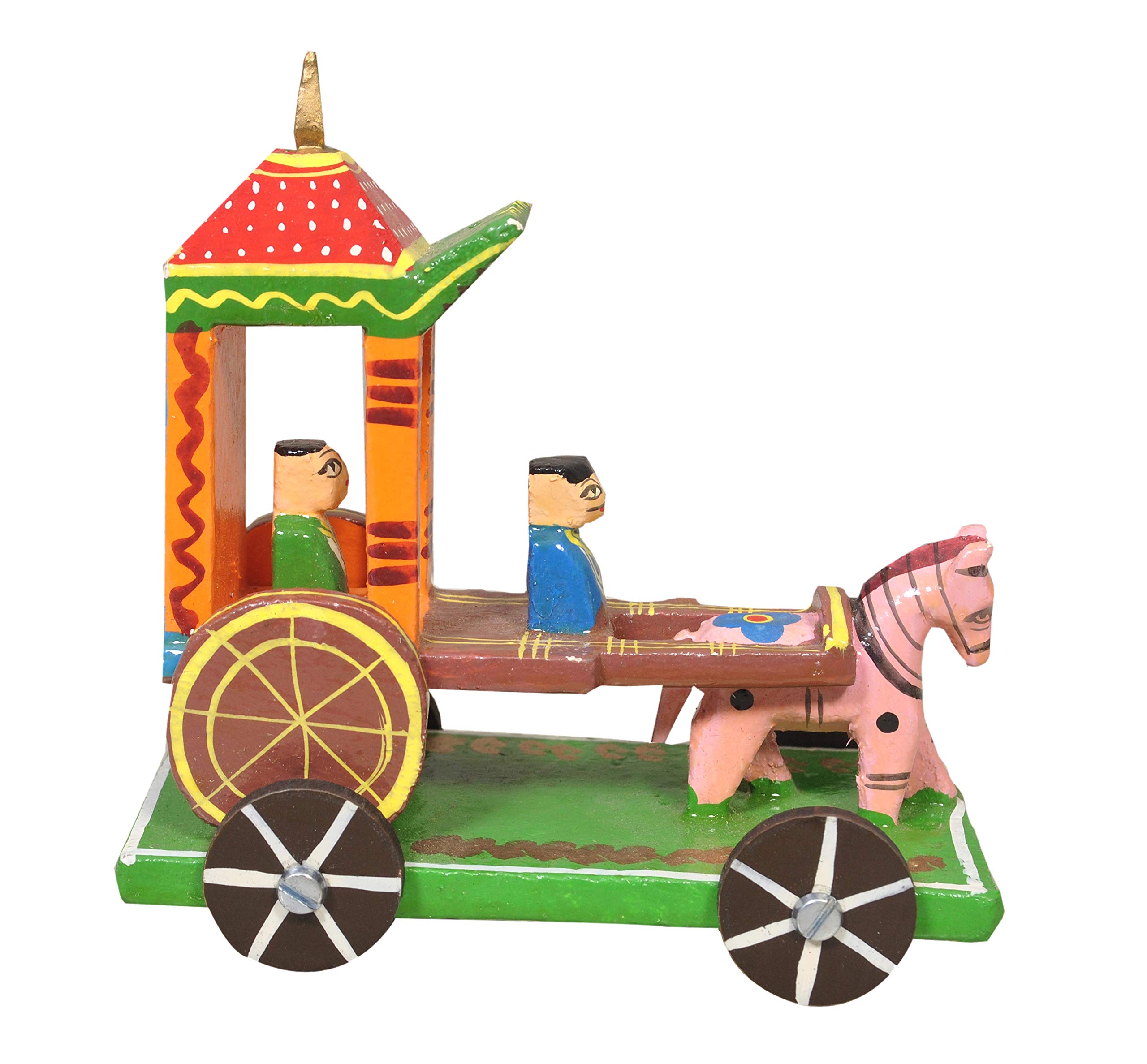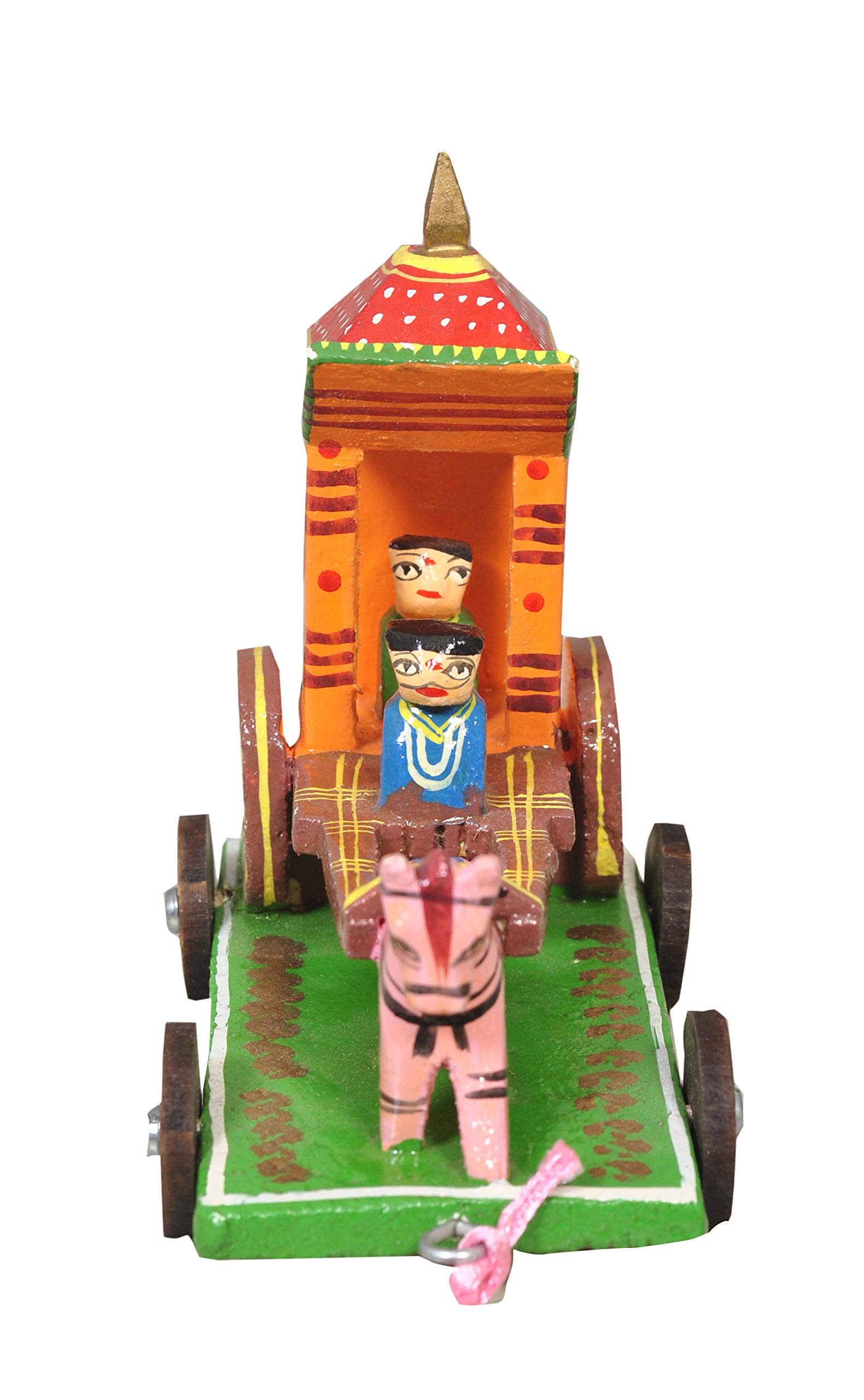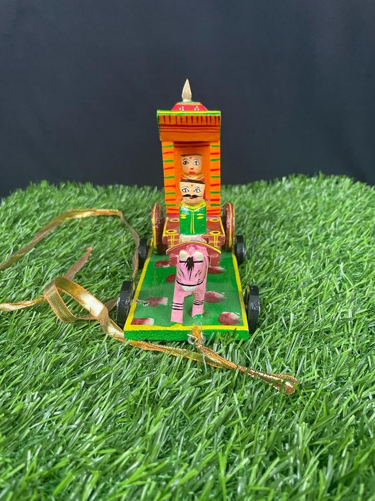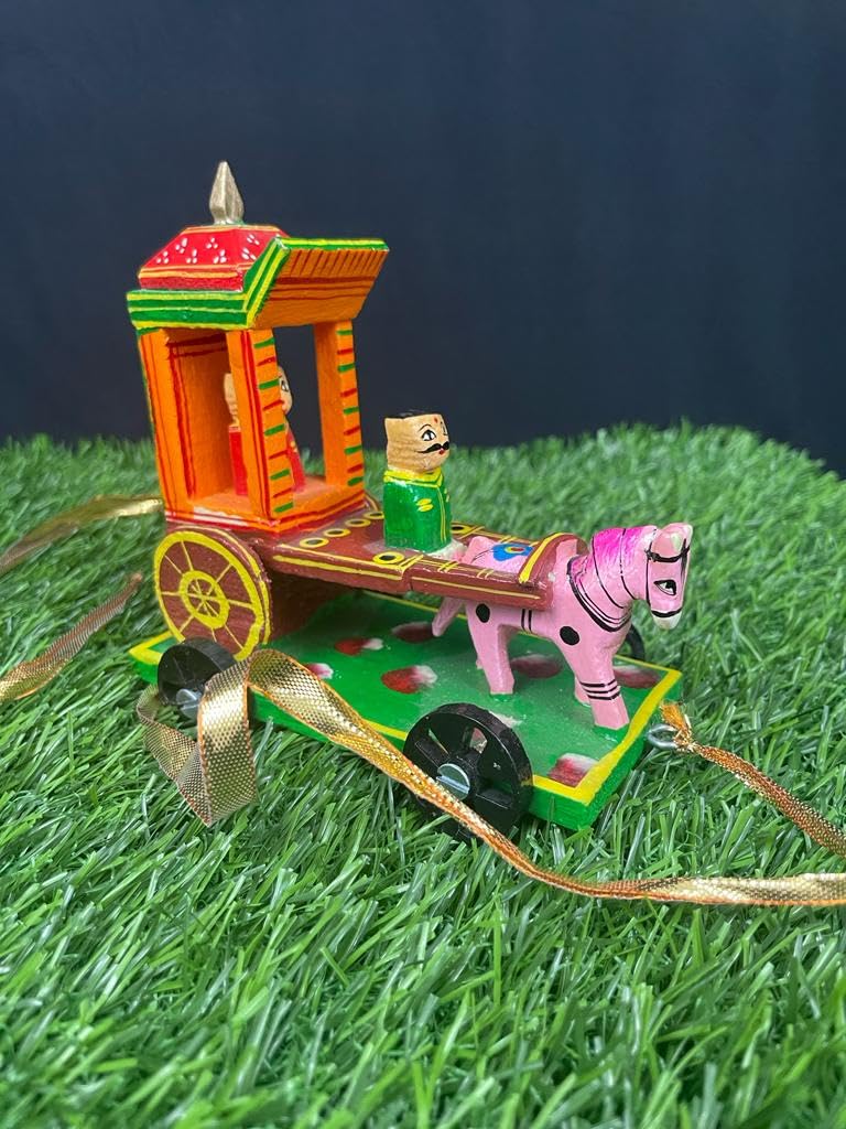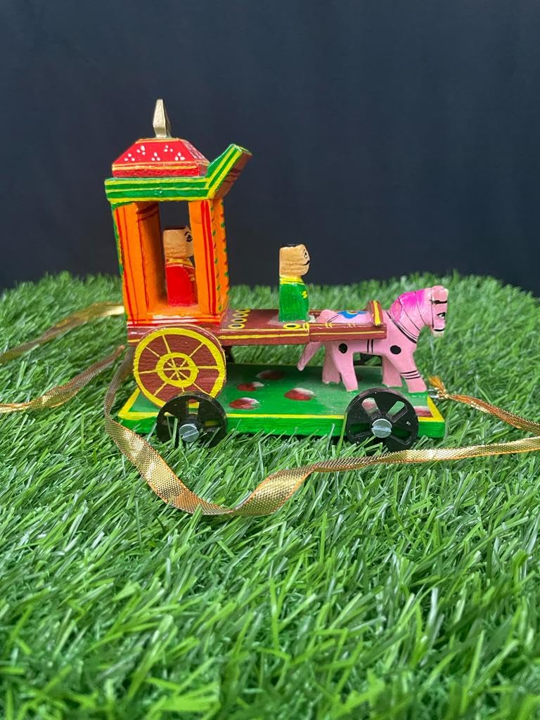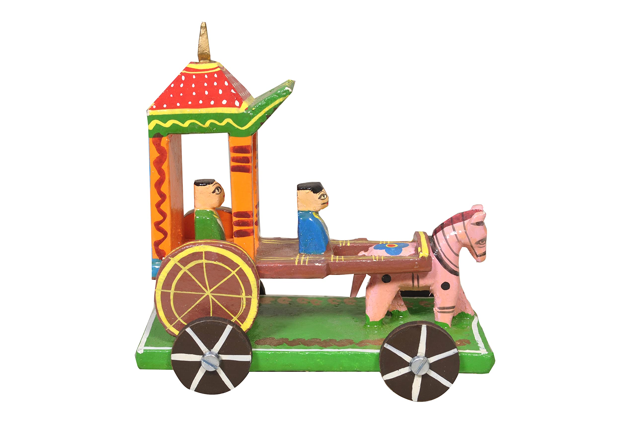 VARANASI WOODEN TOYS Handmade Wooden Horse Chariot Golu Doll (13 cm x 9 cm x 14 cm)
