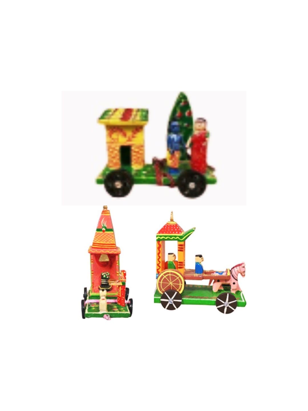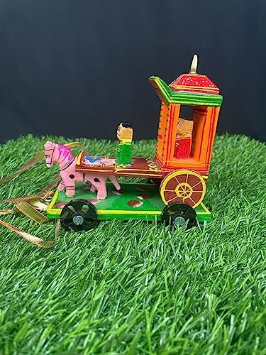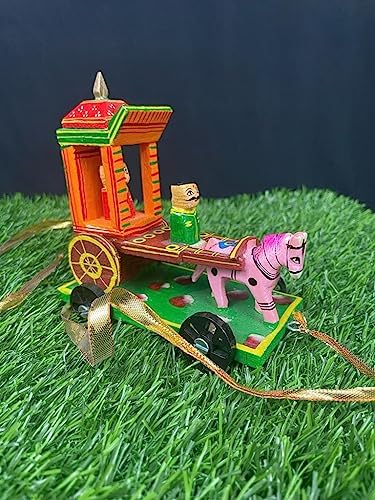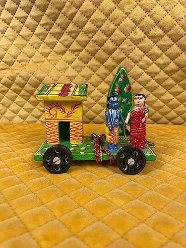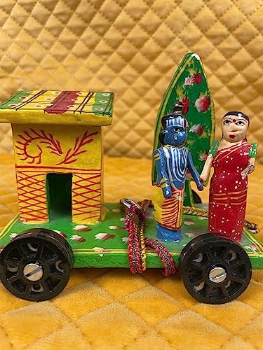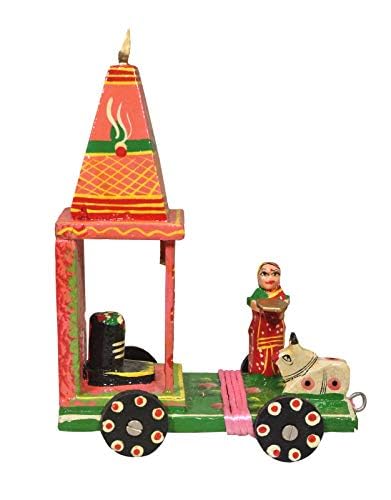 VARANASI WOODEN TOYS has brought an exclusive offer of Golu dolls set 3 that includes Shiva Temple Radha Krishna Temple and Horse Chariot /Rath for the celebration of the festive mood this year. All the golu dolls Shiva Temple Radha- Krishna Temple and Horse Chariot rath are handcrafted and wooden. VARANASI WOODEN TOYS wooden Hand-painted Shiv Linga Golu doll has a look with intricate details. Size Dimension (L x W x H): 13 cm x 8 cm x 20 cm Shiv Linga enhances good luck in your home The Hindu Supreme God ensures the cycle of life by destroying evil ignorance and death. Gift For Your Loved Ones Worshipping Shiva Lingam will bless you with a peaceful family life. This shiva lingam is handmade and nicely handpainted to make the figure look real. It is a beautiful item for decoration at Festive times. Also Commonly used during Indian festive occasions like Diwali and Navrathri Dusserah. Enhance the decor value of the temple house office hotel etc. Great for gifting during weddings anniversaries housewarming ceremonies new ventures award ceremonies etc Celebrate this Navaratri decorating with unique collections of VARANASI WOODEN TOYS wooden Golu Shiva dolls Navaratri Golu Dolls Set. Kolu Bommai / Bomma Golu is a doll and figurine display festival celebrated during the celebration of Navratri. Wooden handmade traditional Radha Krishna chariot cart showpiece represents love joy and happiness that are symbolic to bring prosperity and good luck. Radha Krishna chariot is made by rural artisans to give your home or puja place an ethnic look. good gifting ideas for a birthday or housewarming.Dimension (L x W x H): 13 cm x 8 cm x 14 cm. The horse chariot is also unique in its beauty. It is a wooden handmade and handpainted golu showpiece. Dimension (L x W x H): 13 cm x 9 cm x 14 cm Gifting golu doll on Navratri birthday and other occasions.
