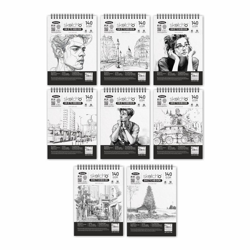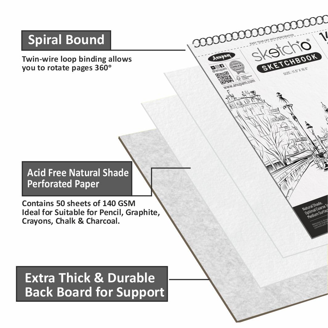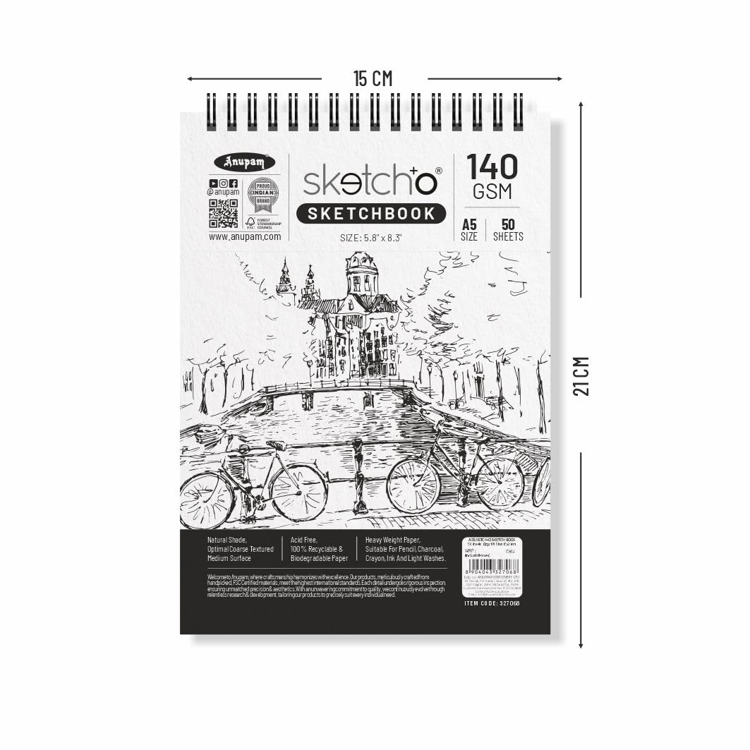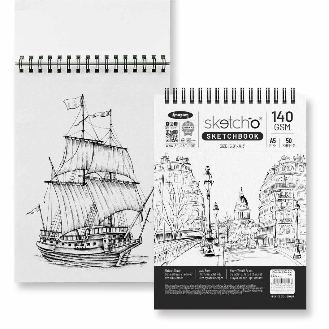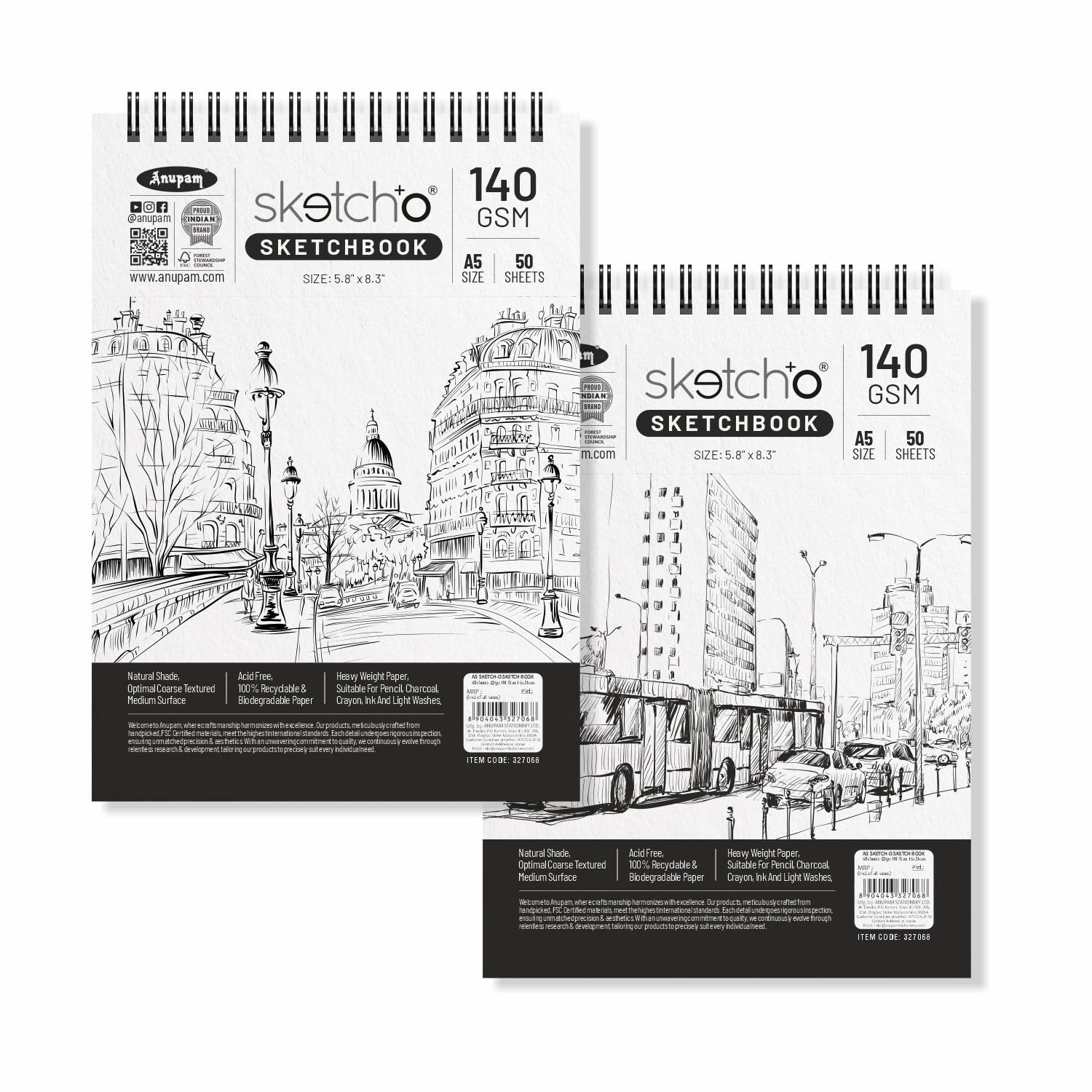 HomeBabyToys & GamesGamesAnupam SketchO Sketch Book A5 Top Spiral Bound Sketchpad Acid Free Paper 140 GSM for Artists, Professional (50 Sheets, 100 Pages) (Pack of 2)