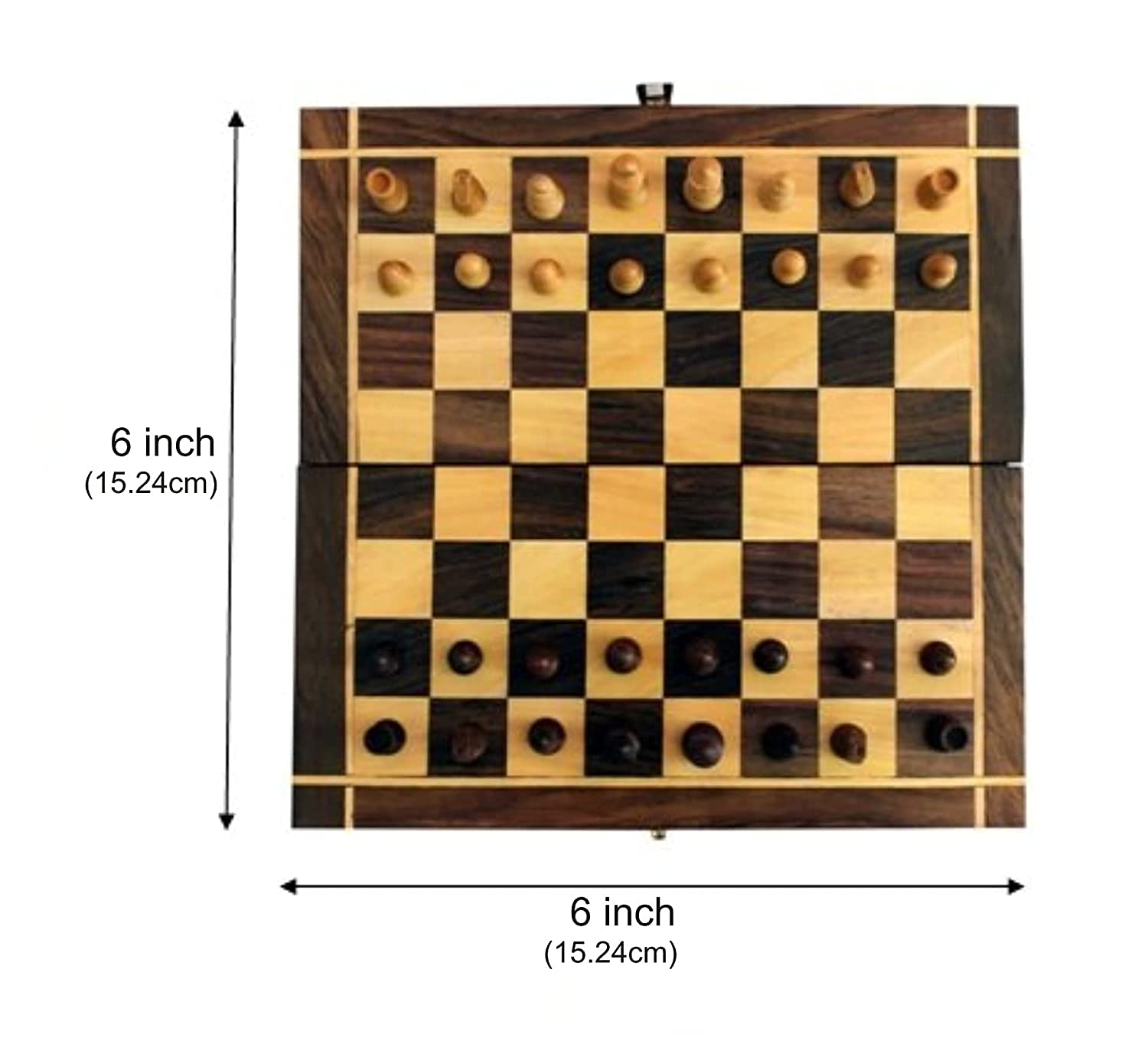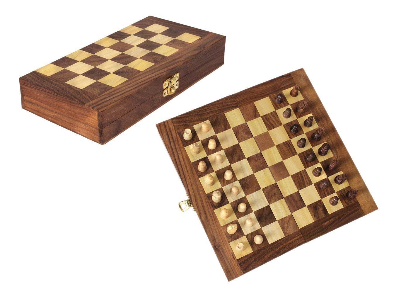 ELEGANT CARVING The chessboard and the chessmen are elegantly carved with polyvinyl chloride and excellent quality plastic. TRAVEL-FRIENDLY Have fun while you travel! One can play this chess game even while travelling also. The Wooden Folding Chess Game Board Set is made of Good Quality Wood that gives it a classic look. Get this chess from Best Chess only to guarantee quality of the wood its finishing. Handcrafted Fold-able Chess Board made on Wooden Base with Wooden Square. Pieces also made of Brown/Yellow Polished Wood. Lovely Handcrafted Chess board for your living room or for a Grand Master in you. Hand carved Indian Wooden chess set. This is a compact folding board that is extremely portable. Wooden box also works as storage to keep the pieces.