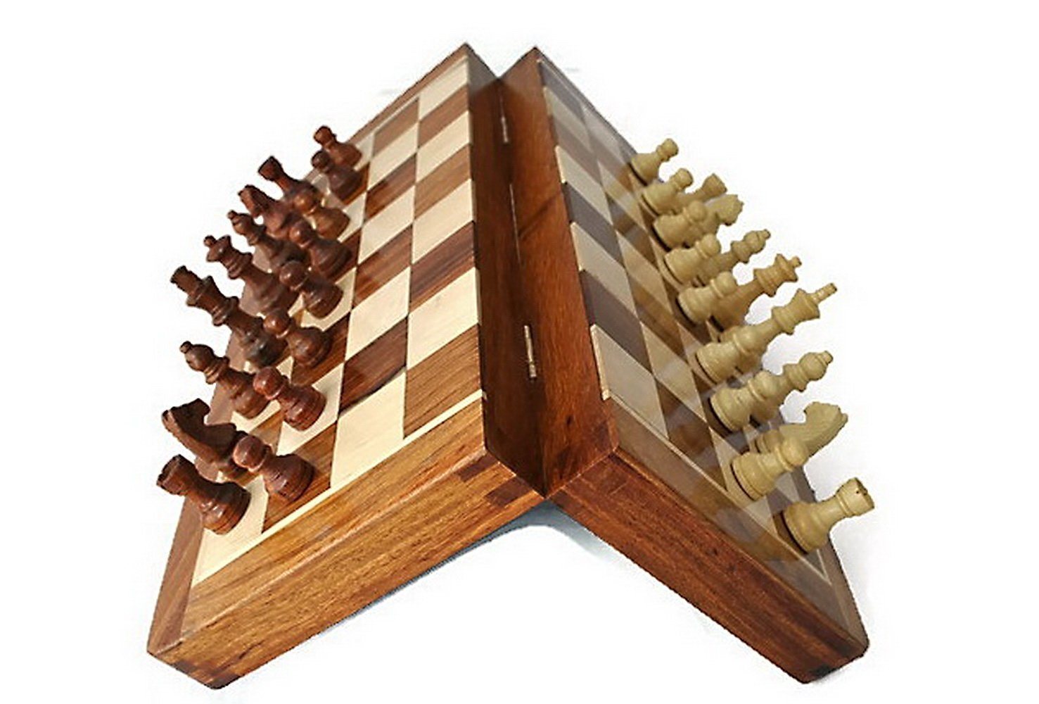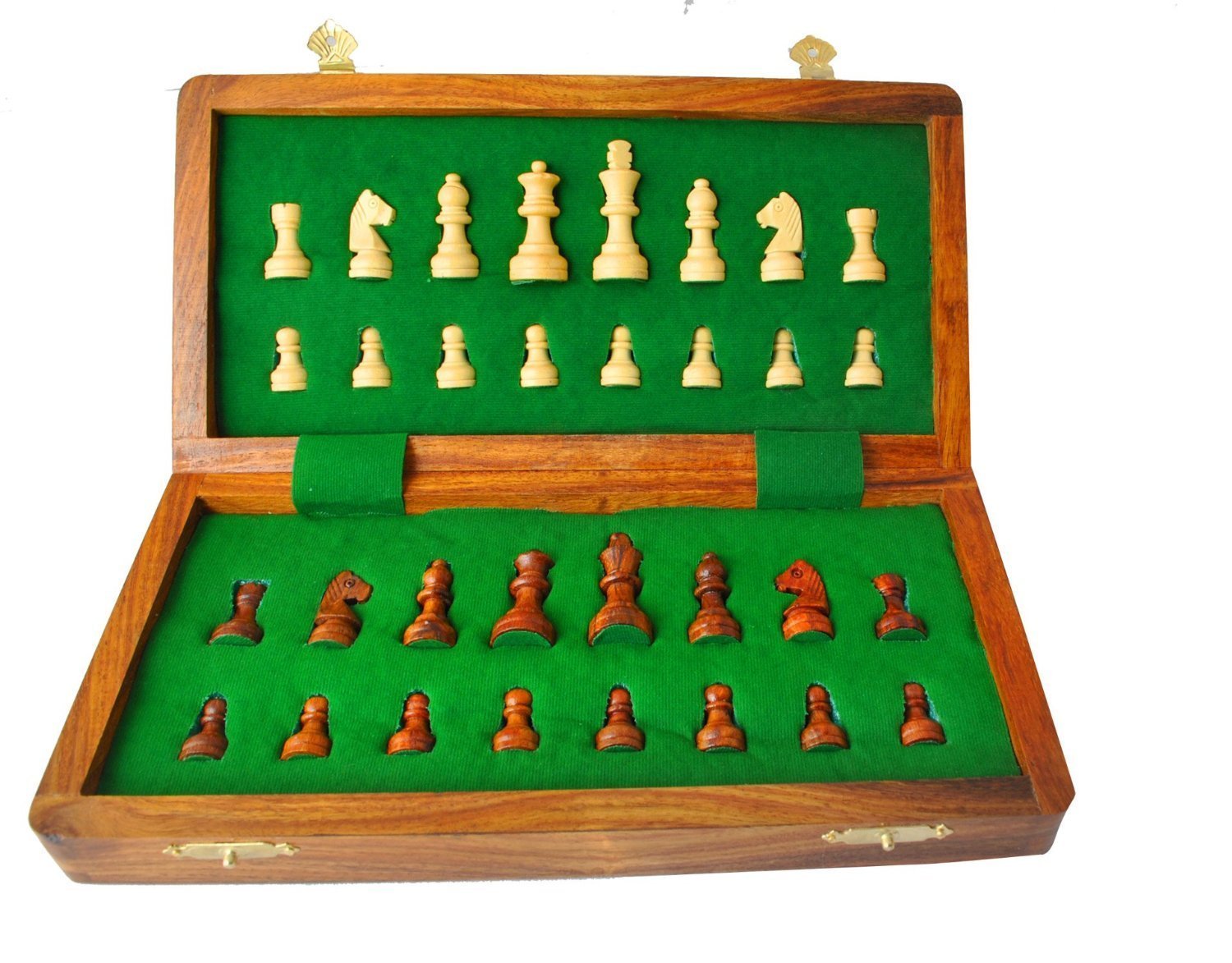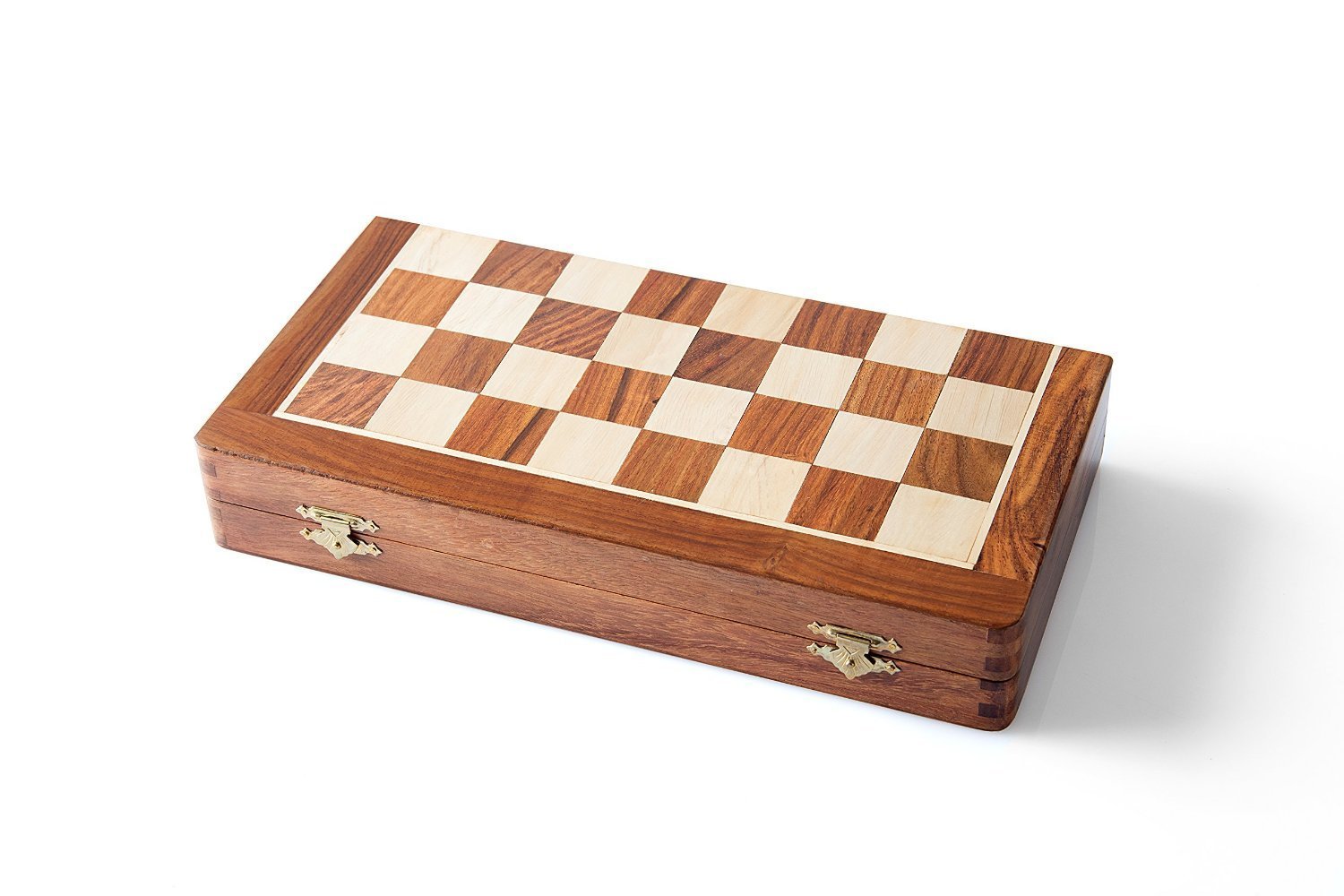 BIJNOR - METAL INLAY IN WOOD Square Magnetic Travel Chess Board Set Wooden Game Handmade Classic Game of Brilliance Small Chess Pieces 10 Inches