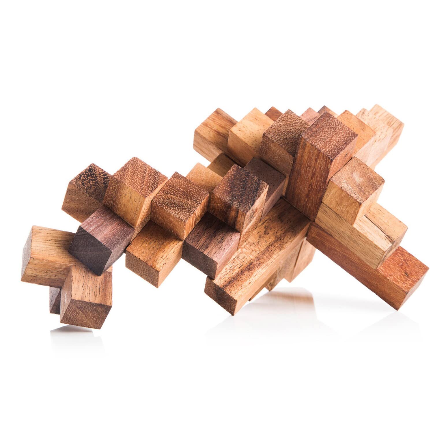 BIJNOR - METAL INLAY IN WOOD Wooden Crystal Shape 9 Pieces Piller Puzzle for Child/Adult/Young Sheesham | Wooden Puzzle for Child Fun | Wooden 3D Puzzle for Child | Jigsaw Puzzle for Adults | Puzzle for Kids