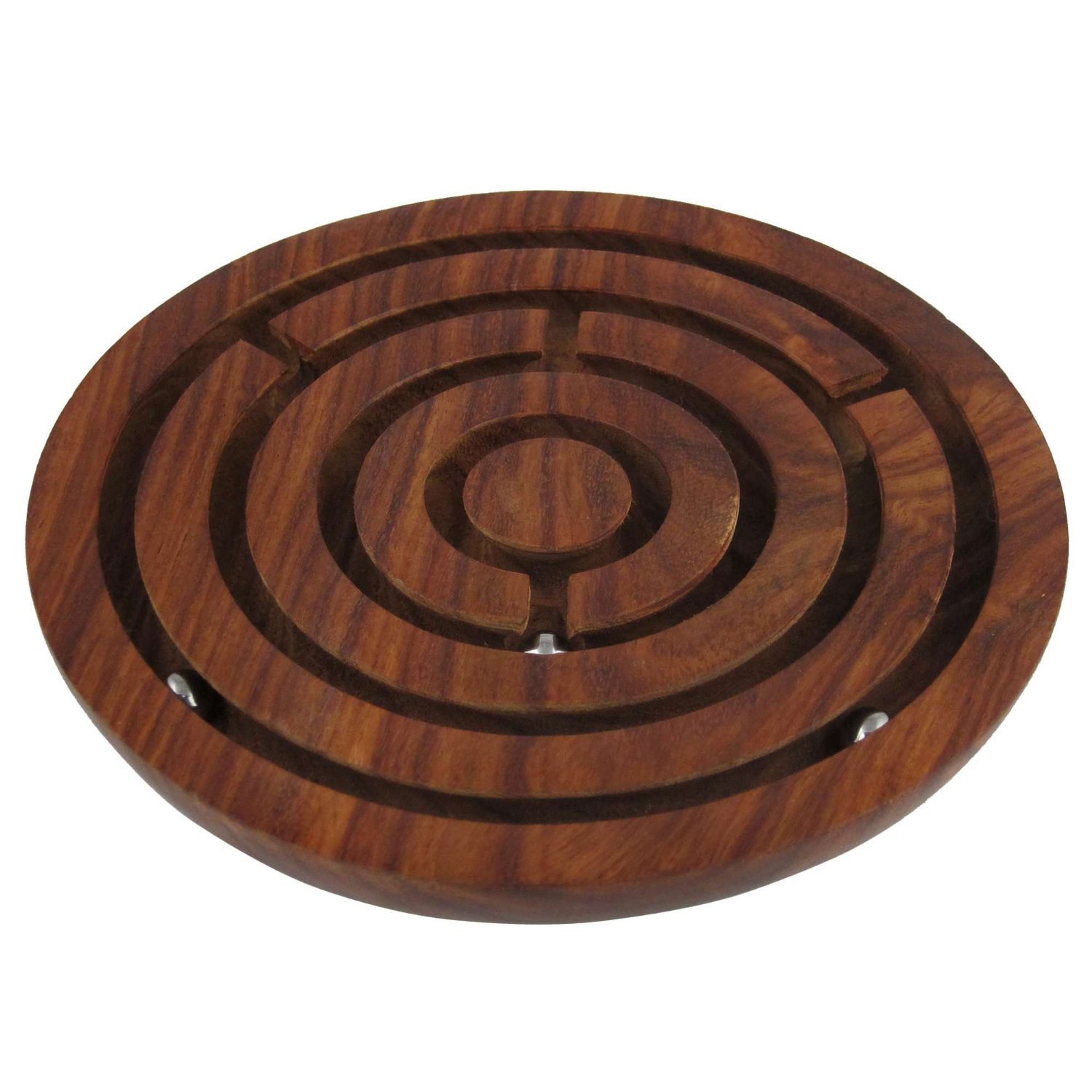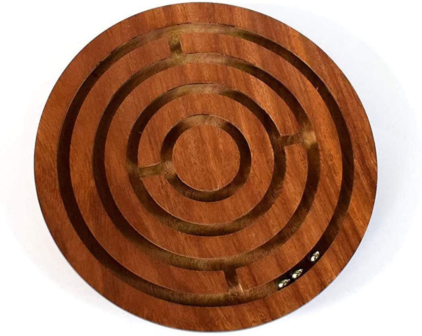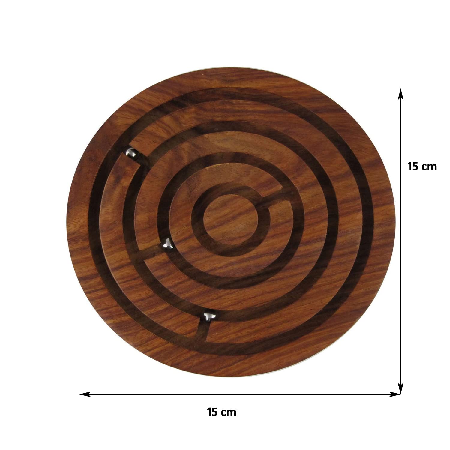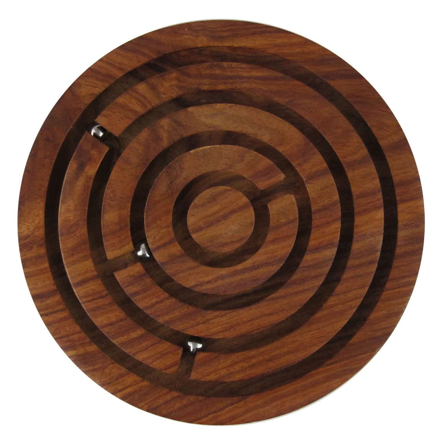 BIJNOR - METAL INLAY IN WOOD Wooden Labyrinth Board Game Ball in Maze Puzzle Handcrafted in India Game Plate Round 6-inch Wooden Puzzle for Child Fun Wooden 3D Puzzle for Child Jigsaw Puzzle for Adults Puzzle for Kids
