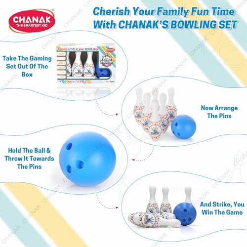 • Features: Chanak brings you the classic bowling game at home. It is designed specifically to withstand your kids rough & tuff playtime. The bowling pins and ball come in three different colors.