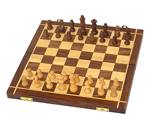 Collapsing Chess Board Set Wooden Game Handmade Classic Game of Brilliance Small Chess Pieces 12 Inches (Non - Magnetic)