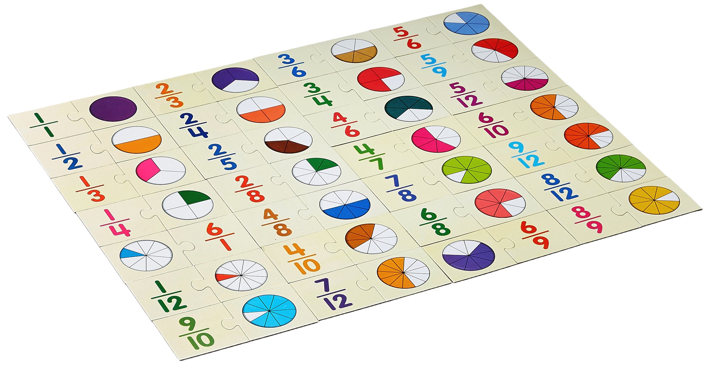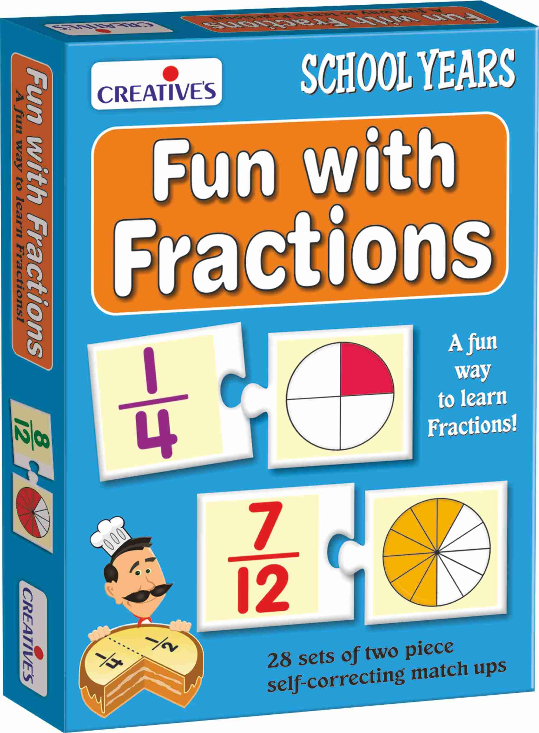 Children will read numeric fractions on the Numeric cards then find identify and match them with their corresponding graphic/pictorial representation cards to practice important skill of fractions in an enjoyable way. Play Memory game and other activities suggested in the Activity Guide. To reinforce the concept children will complete and solve different activities and problems given in the Activity Book. The pack includes 28 sets of two piece Match-ups an Activity Book.